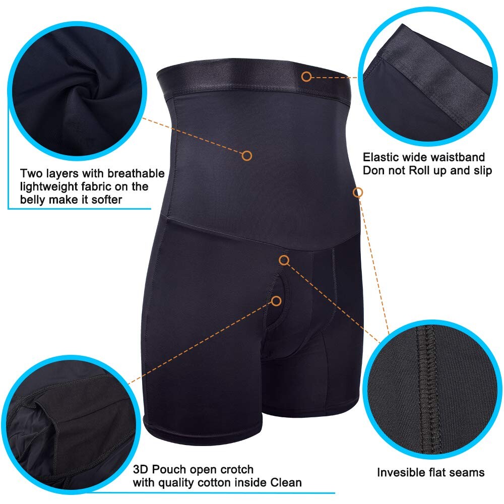 These men's tummy control shorts with 3D POUCH SUPPORT design on the crotch, to fit the male physiological feature.